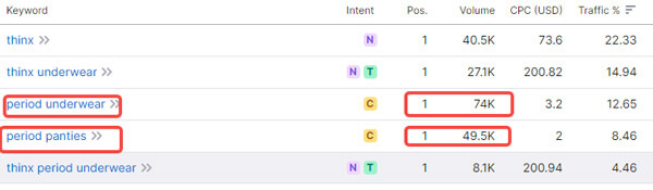 From a data perspective, unique period underwear has attracted the majority of the website’s organic traffic.